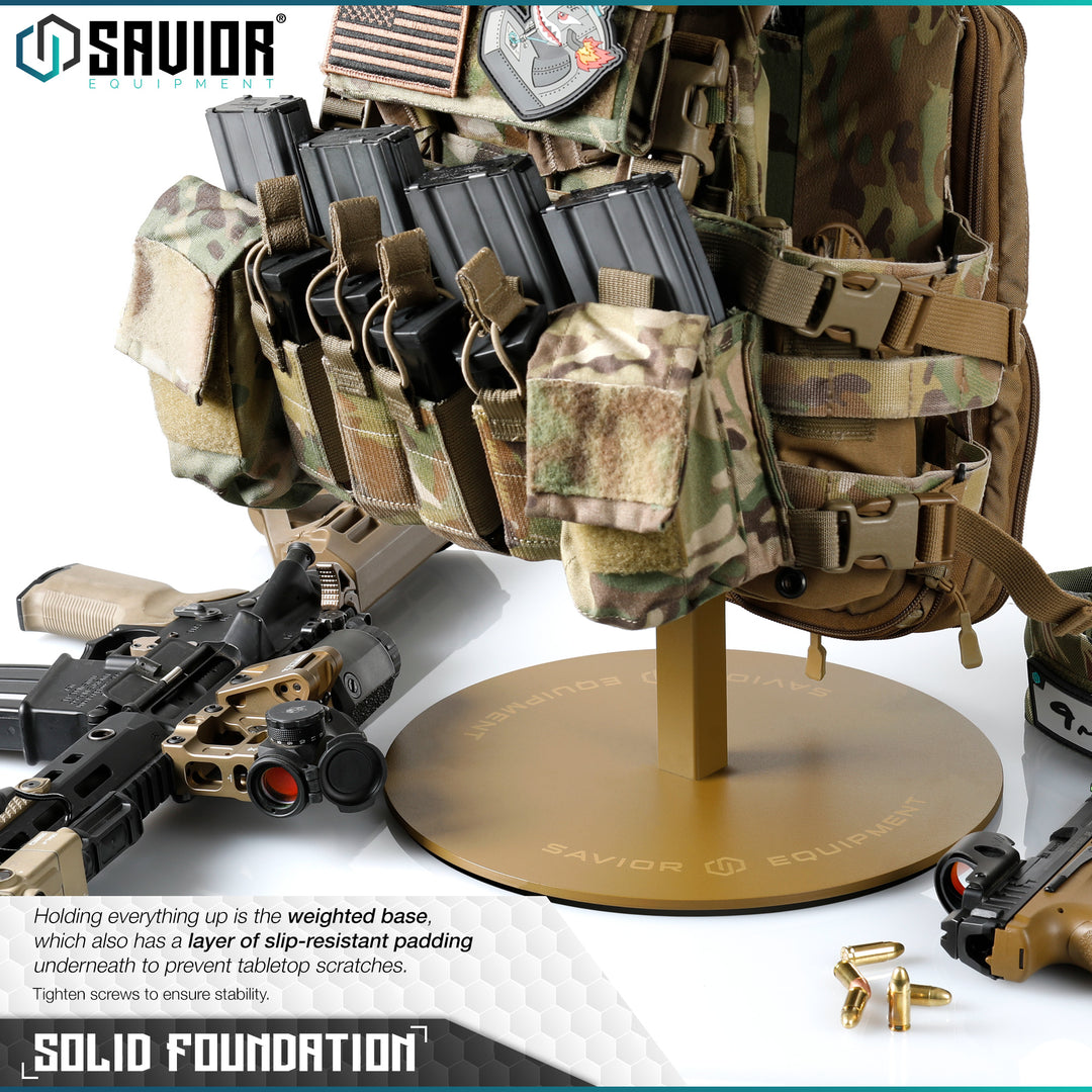 Prostsza wersja stojaka H.A.B. przystosowana do postawienia na stole lub innym podwyższeniu posiadająca miejsce do ekspozycji hełmu oraz kamizelki taktycznej.